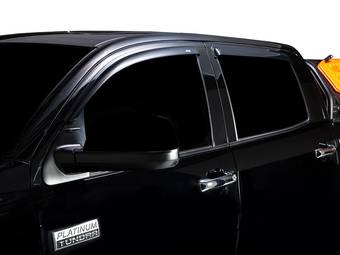 Rain guards, also called window deflectors, help to counteract unsavory weather conditions, shielding cracked-open windows to allow fresh air flow regardless of atmospheric conditions. These 2010 Toyota Tundra accessories also prevent everything from UV rays to insects creeping through the side windows, keeping your interior free from harsh sunlight, harsh weather, pests, and their associated messes.